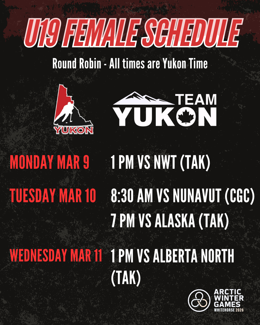 Our three Team Yukon squads are ready to represent — and their round robin schedules are officially live. Check out the games, mark your calendars, and come pack the stands!